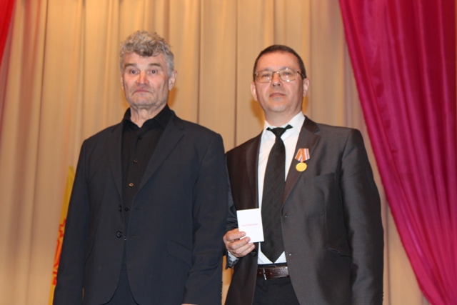 Вăрмар муниципаллă округĕн пуçлăхĕ Василий Шигильдеев тата Вăрмарти халăха социаллă пулăшу кÿрекен комплекслă центрăн директорĕ Жанна Дмитриева волонтерсене сцена çинче «кĕмĕл» волонтерсен харпăр хăй кĕнекисене пачĕç.