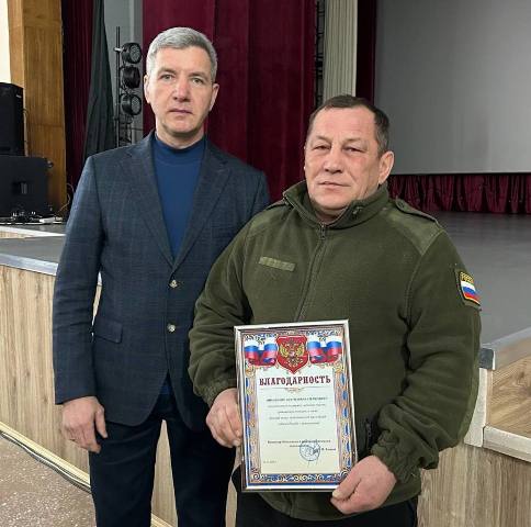 Тав хучĕ Анатолий Валериевич ячĕпе аякри çĕртен — ятарлă çар операцийĕ пыракан вырăнсенчен килсе çитнĕ. Унта: «За неоценимую поддержку, активное участие, гражданскую позицию, а также весомый вклад, приближающий нас к общей победе в борьбе с неонацизмом», — тесе çырнă, 10-мĕш уйрăм танк батальонĕн командирĕ М.Тоиров подполковник алă пуснă.
