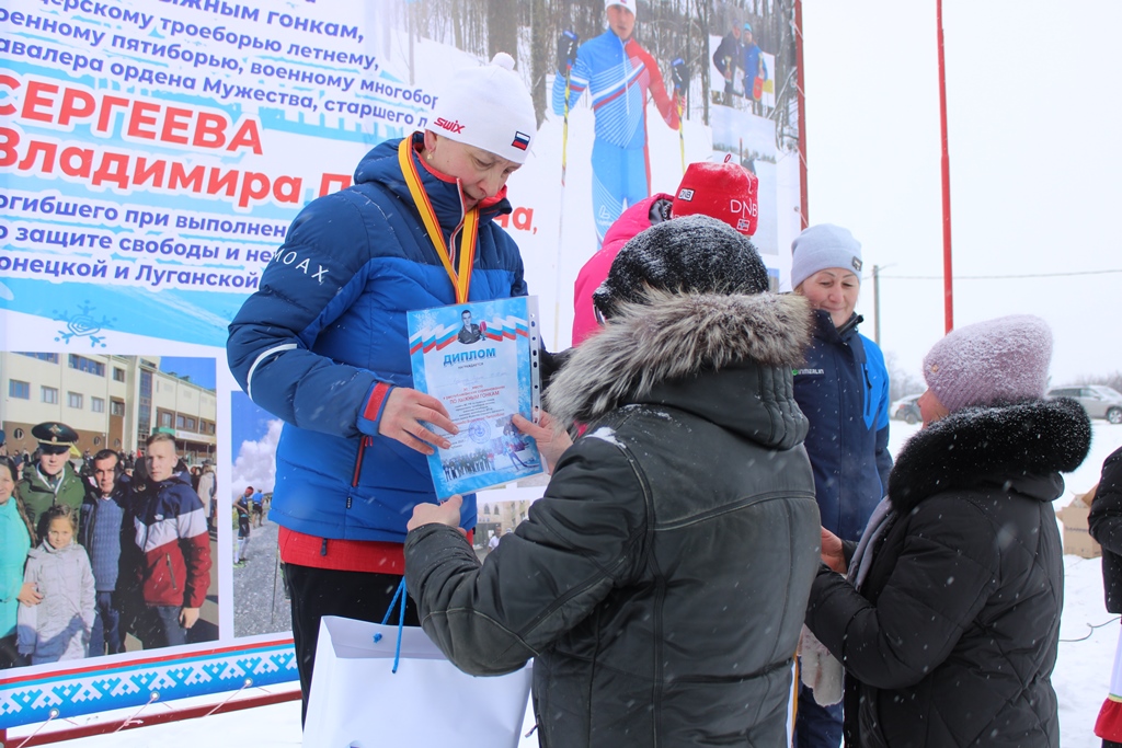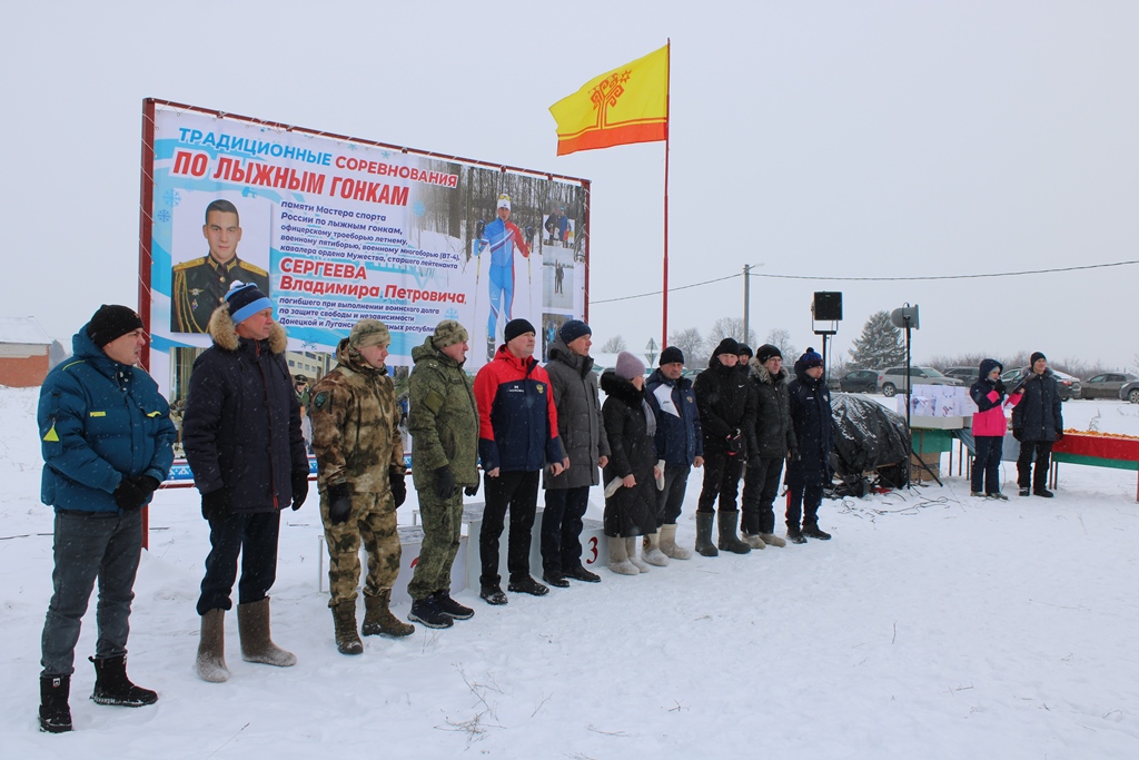 Ăмăртусен торжествăлла пайĕнче пухăннисен умĕнче ЧР физкультурăпа спорт министрĕн заместителĕ А.Степанов, Вăрмар муниципаллă округĕн пуçлăхĕ В.Шигильдеев, Вăрмар муниципаллă округĕн депутачĕсен Пухăвĕн председателĕ Ю.Иванов, запасри подполковник М.Пуклаков, Хусанти танк училищин выпускникĕ, Владимир Сергеевпа пĕрле СВОра çар тивĕçне пурнăçланă С.Мышкин, СВО участникĕ А.Николаев капитан тата ыттисем те тухса калаçрĕç. Владимир Сергеевăн хăюлăхĕ пуриншĕн те тĕслĕх вырăнĕнче пулнине каларĕç, унăн ячĕ нихăçан та манăçмĕ тесе палăртрĕç, амăшĕпе ашшĕне - Елена Гавриловнăпа Петр Владимировича - паттăр ывăлшăн тата çакăн пек пысăк спорт мероприятийĕ йĕркеленĕшĕн тав турĕç. Ăмăртăва хутшăнакансене финиша ăнăçлă çитме сунчĕç. Владимир Сергева асăнса шăплăх минучĕ пулчĕ, унтан яваплă çынсем Владимир Сергеев ячĕпе уçнă асăну хăми умне чĕрĕ чечексем хучĕç.