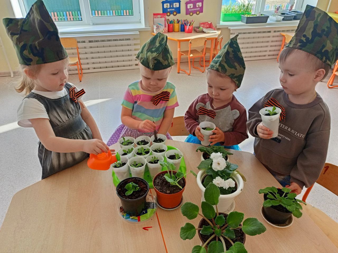 Под руководством воспитателя ребята посадили цветы, которые позже будут подарены ветеранам.