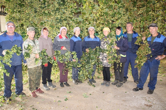Эрне пуçламăшĕнче Кĕтеснер ялĕнчи хăмла участокне çитсе куртăмăр, кунта вăй хуракан хастар хăмлаçăсемпе тĕл пулса калаçрăмăр.