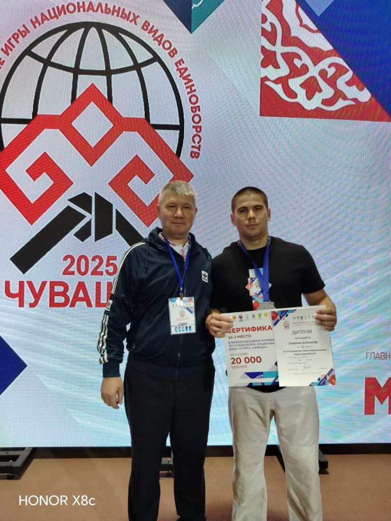 Поздравляем воспитанников отделения самбо Урмарской спортивной школы имени А.Ф. Фёдорова: уроженца деревни Анаткасы Семёнова Александра Сергеевича с серебряной медалью по национальной борьбе «Керешу» в весовой категории 90 кг в рамках ll Всемирных игр национальных видов единоборств и Михайлова Дмитрия Сергеевича, уроженца села Челкасы с успешными выступлениями в весовой категории 100 кг.