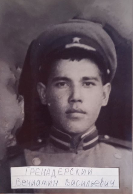Вениамин Васильевич 1926 çулхи апрелĕн 18-мĕшĕнче Вăрмар районĕнчи Çиçтĕпе ялĕнче Василий тата Иустина Гренадерскисен çемйинче çуралса ÿснĕ. Çиçтĕпери, Чăрăшçырмари шкулсене вĕренсе пĕтернĕ. 1943 çулхи ноябрĕн 16-мĕшĕнче Совет çарне кайнă. Унта вăл Павел Иванович Батов генерал çарĕнче минометчик пулса тăрăшнă. Полк командирĕ – Кривоносов, Фронт командующийĕ К.К.Рокоссовский маршал пулнă. Днепр, Сож, Висла, Отер юханшывĕсене тата çак хуласене ирĕке кăларнă: Гомель, Могилев, Минск, Барановичи, Белостак, Варшава, Познань, Бобруйск, Гданцик, Торуль, Штеттнин, Демин, Градунец, Узловая ст., Кричев ст., Гродно, Берлин. Вăрçă çулĕсем вăрăм та йывăр пулнă. Вăрçă вăхăтĕнче çĕнтерÿпе Берлина çитнĕ. 1945 çулхи майăн 9-мĕшĕнче Çĕнтерÿ кунĕ тесе йышăннă. Радио ирех: «Берлин полностью капитулирован», - тесе пĕлтернĕ.