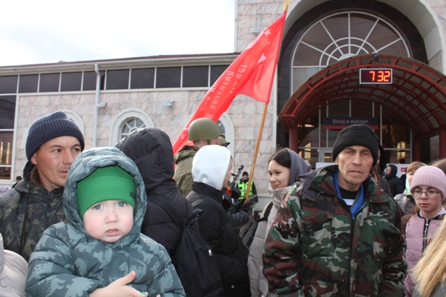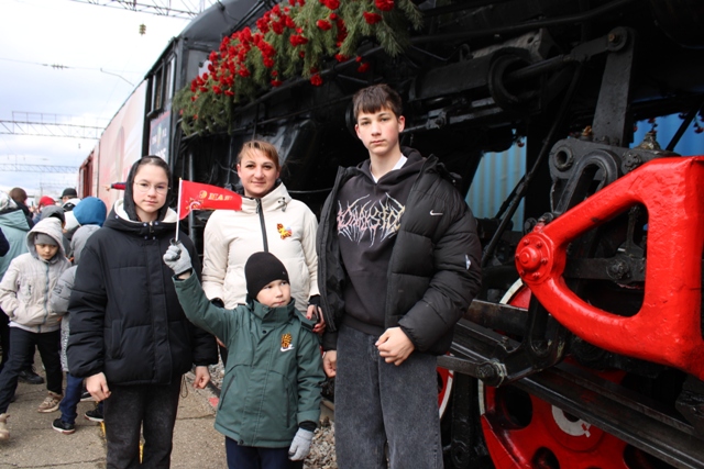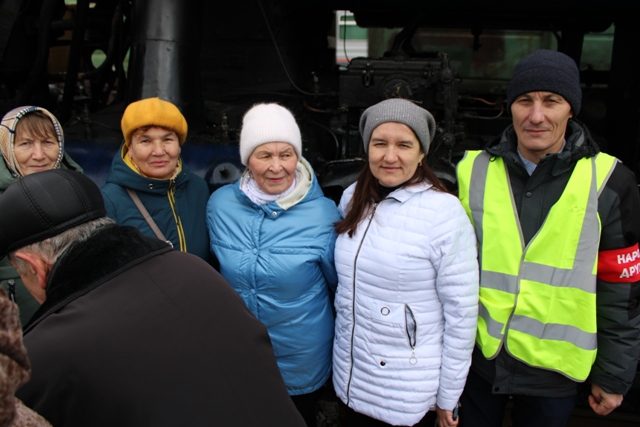 Паровоз встретили сотни урмарцев, волонтеры, школьники, активисты общественных организаций и, конечно же, ветераны боевых действий. Особенно торжественным моментом стало открытие мероприятия и вынос копии Красного Знамени Победы, водружённого над Рейхстагом в мае 1945 года воинами Красной Армии.