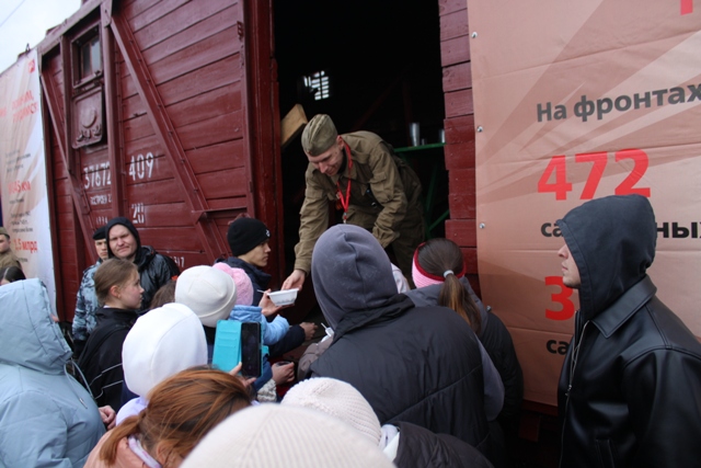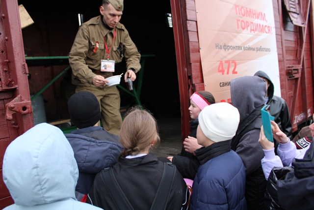 Урмарцы смогли попробовать солдатскую гречневую кашу из полевой кухни. На перроне звучали песни военных лет. За короткое время «Поезд Победы» стал важным и запоминающимся событием для Урмарского округа.