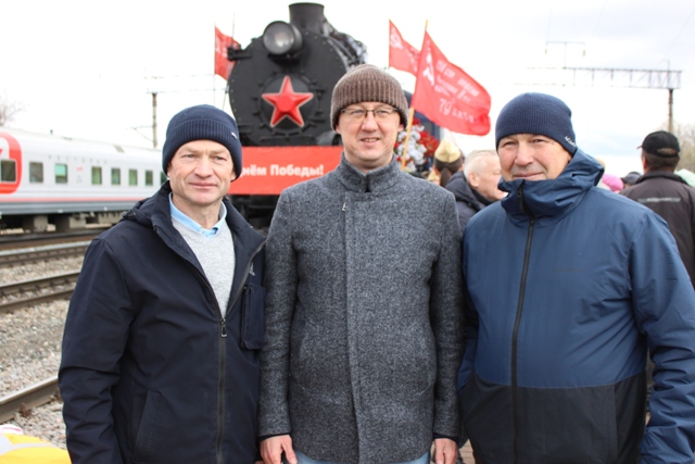 Сегодня Урмарский муниципальный округ в торжественной обстановке встречал сформированный Горьковской железной дорогой мемориальный «Поезд Победы» в честь 81-ой годовщины Победы в Великой Отечественной войне. Пронзительные гудки старинного паровоза в весенних цветах и со знаменем Победы — таким запомнят урмарцы «Поезд Победы», который является настоящим музеем на железных колесах.